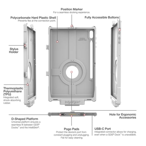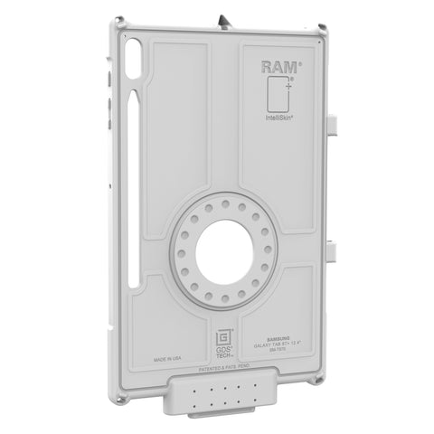 The IntelliSkin Next Gen for Samsung Tab S8+, S7+ & S7 FE 12.4" - Gray (RAM-GDS-SKIN-SAM78-NG-GRY) is an insert molded skin that combines a hard plastic shell with soft, shock-absorbing rubber. The light gray aesthetic is ideal for sophisticated, bright workplaces in industries such as retail, medical, and more. Ruggedized contacts for repetitive docking in field applications remain on the exterior, but are now flat to collect less dirt and allow for easier cleaning. And an integrated USB Type-C connector at the bottom of the skin allows for device charging even when you dont have a GDS Dock available. Like the original IntelliSkin, these sleeves still provide military-grade drop protection and prevent damage to your devices charging port from constant docking with an integrated GDS connector molded directly into the skin. The IntelliSkin Next Generation for the Samsung Tab S8+, S7+ 12.4" SM-T970 is compatible with a variety of GDS Docks and accessories, as well as new docking cups for upgrading existing GDS vehicle docks. Always Protected. Always Connected.