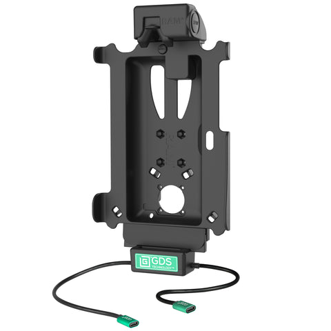 The GDS Tough-Dock + USB-C Data for Tab Active4 Pro & Tab Active Pro (RAM-GDS-DOCK-SAM54NC-CU) is a vehicle dock designed to support the Samsung Galaxy Tab Active4 Pro and Tab Active Pro wrapped in an IntelliSkin Next Gen protective sleeve. Using a USB Type-C power connector, the GDS Tough-Dock supports high speed charging capabilities required by the Samsung devices. It also features an additional USB Type-C connector to support a single peripheral device. The USB Type-C connection work seamlessly with Klein Electronics technology to enable push-to-talk (PTT) over-cellular capabilities. The GDS Tough-Dock is designed with housing that accommodates the RAM NFC Extender, is compatible with RAM ball and socket systems, and requires a 4-hole AMPS pattern ball base. The GDS Tough-Dock is backed by a 3-year warranty. Always Protected. Always Connected.