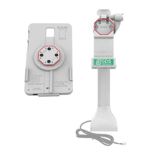 The GDS Uni-Conn 14" Locking Pedestal Dock with PoE - Gray (RAM-GDS-DOCKLR-D11-14-U1E-GRY) is a free-standing, 14" pedestal dock for devices enclosed in an IntelliSkin Next Gen, IntelliSkin Hard Case, or standard IntelliSkin Thin-Case with a GDS Uni-Conn adapter. This solution can swivel 180 degrees and allows devices to tilt 180 degrees, which is ideal for customer-centric industries like retail, hospitality, food service, and more. Keep your device safe in high-traffic environments with the key lock, integrated to provide additional theft deterrence. Power is provided to the pogo pins integrated into the GDS Uni-Conn dock via Power over Ethernet (PoE) connection. This dock features a drill-down attachment style, providing a stable base for the tall dock. The light gray aesthetic is ideal for sophisticated, bright workplaces. One Dock to Connect Them All Always Protected. Always Connected.