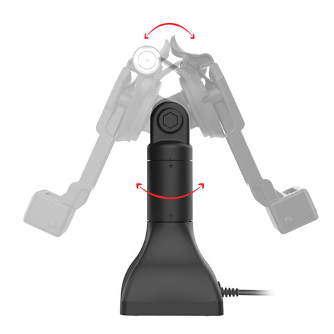 - Dock swivels 180 degrees and enables connected devices to tilt 180 degrees