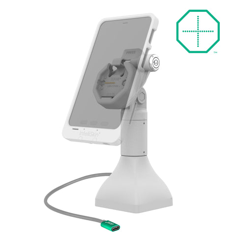 - Light gray, key-locking 7" pedestal dock for devices enclosed in an IntelliSkin® Thin-Case™ with Rear Pogo Pads