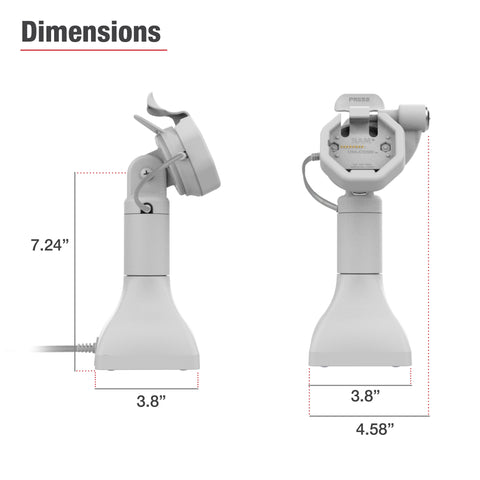 - Product Dimensions: Height from Base to Tilt Bolt: 7.24" | Base Width: 3.8" | Base Depth: 3.8"