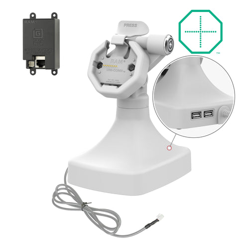 - 1 x GDS® Uni-Conn™ Powered Locking Tilt & Swivel Dock with PoE + Data - Gray (RAM-GDS-DOCKLR-D14-U3E-2A-GRY)